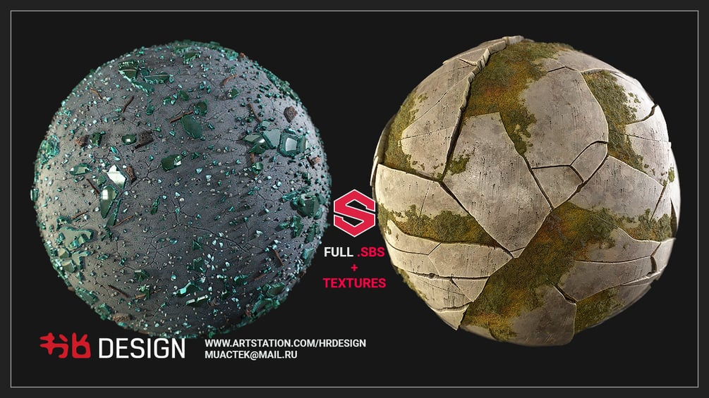 Substance Designer Glass and Stone Wall Materials (SBS+Textures)