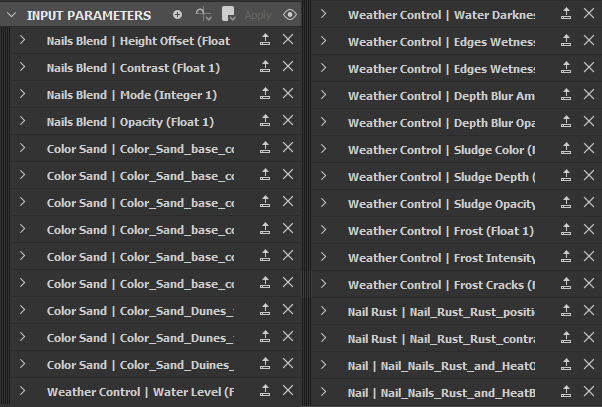 I ruled out a number of parameters when adjusting which you can control the degree of mixing of nails with sand, rust on nails, add water or turn it into engine oil. Also you can control the color of the sand and of course you can change the whole scheme for yourself;)