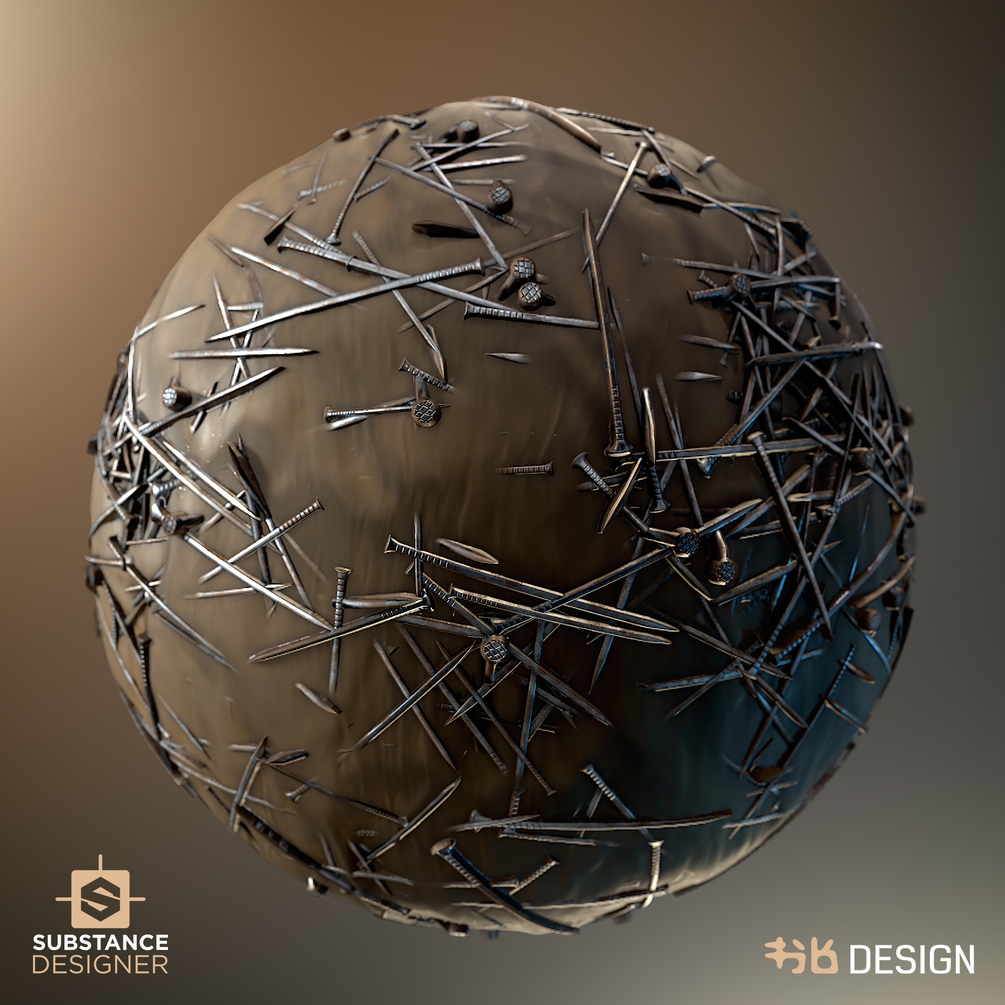 Thanks you Allegorithmic for the new possibilities of the Substance Designer. Made very simple Nails and a substrate in the form of a stylized industrial sand, hm of dust.